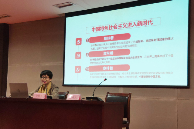 杨林香教授从习近平新时代中国特色社会主义思想的理论渊源和产生的时代背景介绍了习近平新时代中国特色社会主义思想的总体情况,向师生明确了习近平新时代中国特色社会主义思想的主要内容,总体回答新时代坚持和发展什么样的中国特色社会主义,具体回答新时代坚持和发展中国特色社会主义的总目标、总任务、总体布局、战略布局和发展方向、发展方式、发展动力、战略步骤、外部条件、政治保证等基本问题。参加讲座师生纷纷表示,讲座既注重从理论上解读,又注重结合实际进行分析,对于深入学习贯彻习近平新时代中国特色社会主义思想具有重要的指导和推动作用。