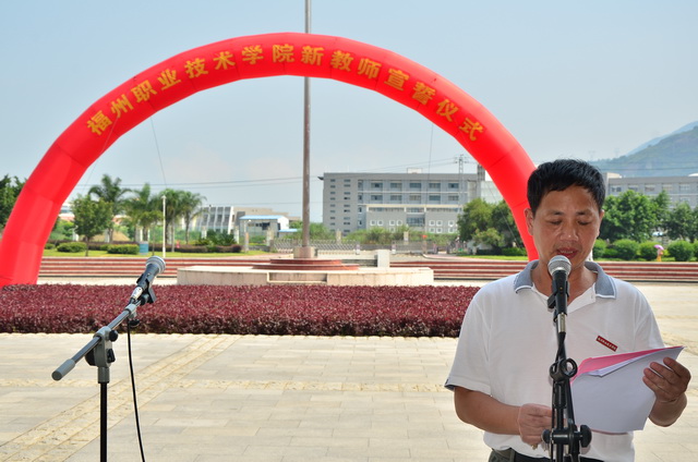党委副书记林福荣主持了宣誓仪式。在、省级教学名师詹碧卿副院长的领誓下,19位新教师在国旗下庄严宣誓:“忠诚人民教育事业,依法履行教师职责;爱岗敬业,关爱学生;刻苦钻研,严谨笃学;勇于创新,奋发进取;淡泊名利,志存高远;为海西建设,呕心沥血;为科教兴国,上下求索;为民族复兴,广育英才!”