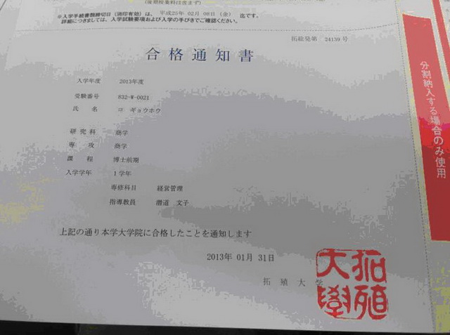 应用外语系2012届商务日语专业毕业生胡晓峰同学于2012年4月赴日本带薪实习,实习期间备考日本大学院的研究生,并于今年2月成功考上日本拓殖大学院,攻读商学科的经营管理学,是拓殖大学商学科唯一以专科生的身份考上的学生。