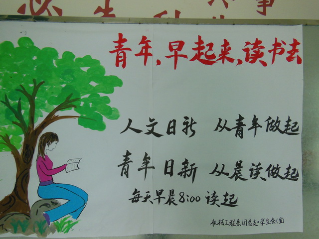 为了营造良好的校风、学风和班风,督促学生养成良好的行为习惯,培养学生的自觉性和纪律性,同时提高工科学生的人文素养,机械工程系全系范围组织了晨读活动。在此次晨读活动开展之前,系部领导、辅导员进行了全面动员和晨读课程规划,系团委学生会印发了《机械工程系早读活动倡议书》,并且得到了学生们的积极响应。