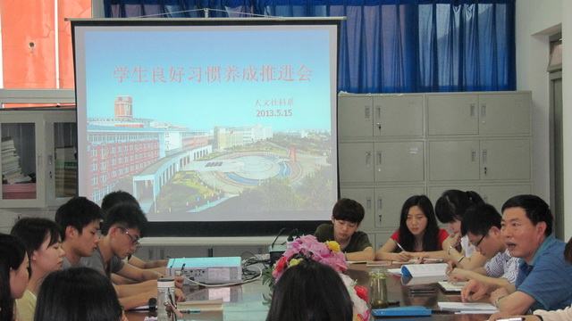 人文社科系于2013年5月15日下午在综合楼315会议室召开学生良好习惯养成推进会。会议由学生党支部书记董钦同志主持,各班主要学生干部及系两委学生干部参加会议。