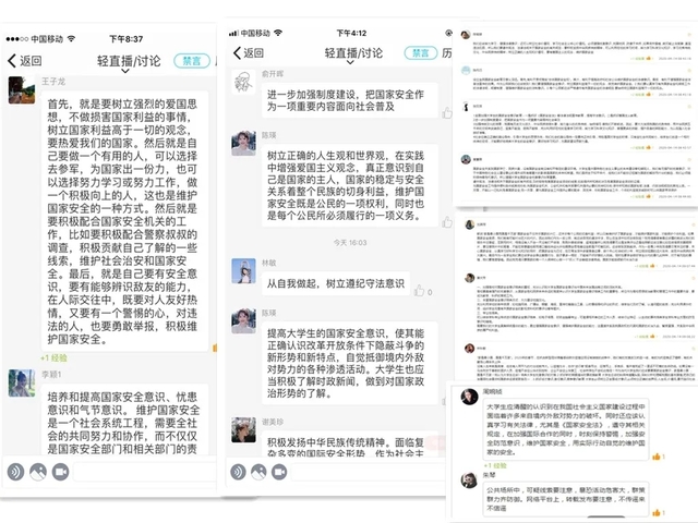 4月15日上午,全体思政课教师和学生一起观看学习由教育部录制的“2020年全民国家安全教育日高校公开课”,开展教学研讨,围绕主题制定了线上“全民国家安全教育”专题“一课一研讨”教学方案。思政课教师拓展教学资源,实行“教学+研讨”方式,依托云班课、学习通等网络平台,结合所授班级的学科专业特点和校园文化内涵,认真开展线上教学,组织线上互动,引导学生发言讨论;同时充分引用权威部门、主流媒体相关资源,将在抗疫一线用实际行动维护公共卫生安全、捍卫国家安全的先进典型及感人事迹,润物无声地融于线上教学中,引起学生共鸣。