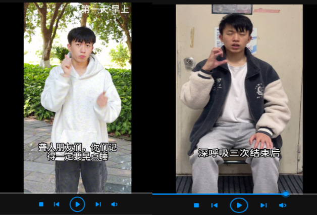 在爱心楼一楼中庭,关爱特教生与睡眠知识科普巧妙融合,为校园增添了一抹别样的色彩。手语vlog中,特教生用灵动的双手告诉大家如何从饮食、运动、放松技巧等方面促进睡眠。此次手语活动不仅展现了对特教生群体的关爱关注,更是希望通过这种新颖的方式给全体同学带来启发。