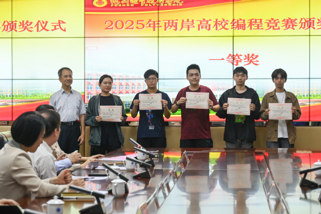 4月29日,我校举办2025年两岸高校编程竞赛颁奖仪式。台湾铭传大学资讯学院院长李开晖一行27人,福建理工大学代表队,我校副校长张兰英,党政办公室、教务处、国际教育中心、信息工程学院等部门负责人及相关人员分别参加活动。
