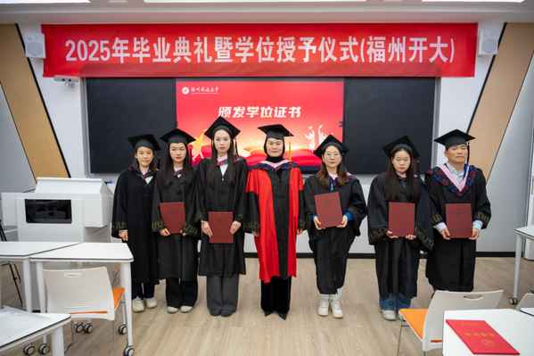 11月29日,福建开放大学举办2025年毕业典礼暨学位授予仪式,福州开放大学设立分会场,并组织区县学位获得者、毕业生代表、2025年优秀学位论文获得者及指导老师代表等通过双向视频全程参与。