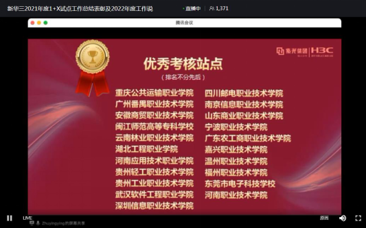 近日“1+X”证书培训评价组织——新华三集团召开2021年度1+X试点工作总结表彰及2022年工作说明会,我校在全国大数据平台运维职业技能等级证书试点工作中表现突出,试点阶段累计产出证书172本,被新华三集团授予优秀考核站点荣誉称号。
