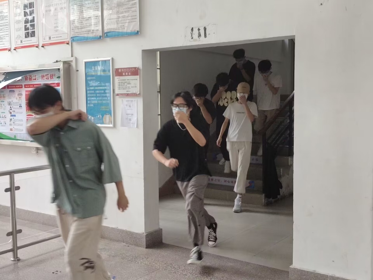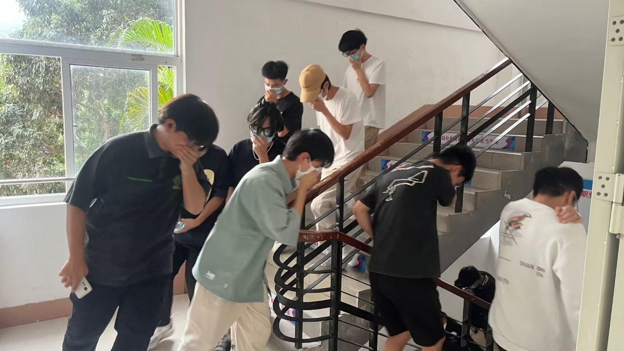 为响应上级和保卫处的号召,信息工程系师生开展安全防护宣传教育工作。于2022年11月19日在宿舍楼举办了相关安全防护宣传教育主题的逃生演练。