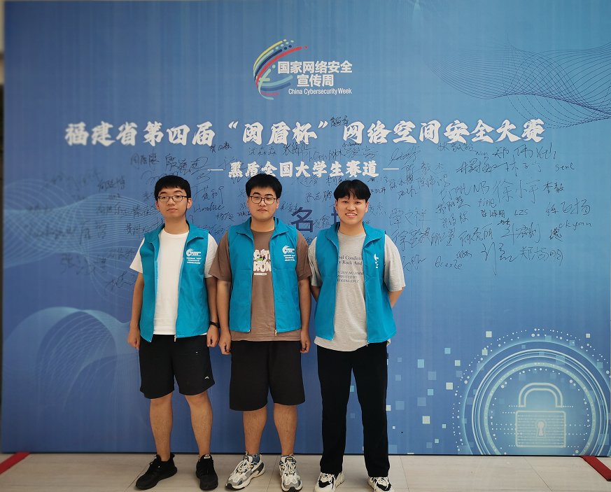 由福建省网信办、教育厅等省级部门主办的第四届“闽盾杯”(黑盾全国大学生赛道)全国总决赛于2023年6月3日在福建福州举办。经过全国的选拔赛、复赛、决赛,我校信息工程系信息安全专业参赛队(陈恩翔、徐晓彬、郑镇焜)在全国众多参赛院校代表队中荣获该赛项二等奖,林雪华老师获得优秀指导老师称号。学生在比赛中团结向上,充分展现了我校学子扎实的技术水平。