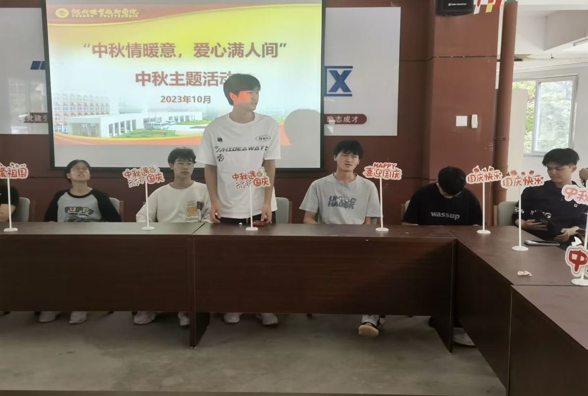 为弘扬优秀传统文化,培养学生爱国爱校情怀,10月2日,信息工程系在一站式学生社区南区共享中心开展“中秋情暖意,爱心满人间”主题活动,辅导员老师和部分留校学生参加。