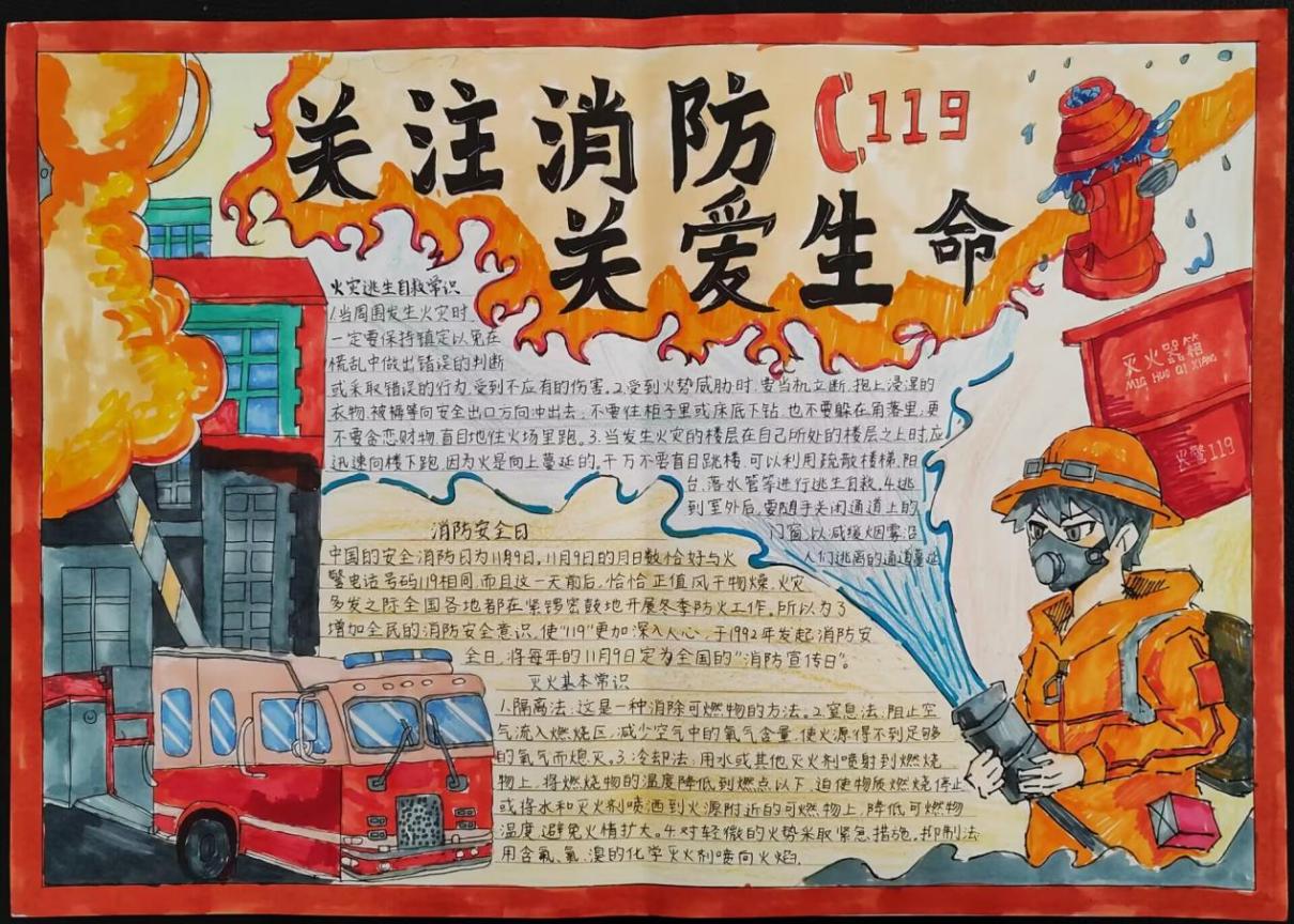 消防安全是头等大事。为了增强同学们消防安全意识,广泛宣传普及消防安全常识,信息工程系在“119消防日”来临之际举办了一场主题为“关注消防,关爱生命”的手抄报比赛。