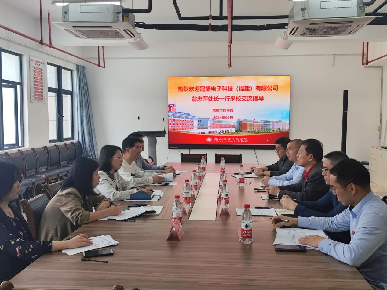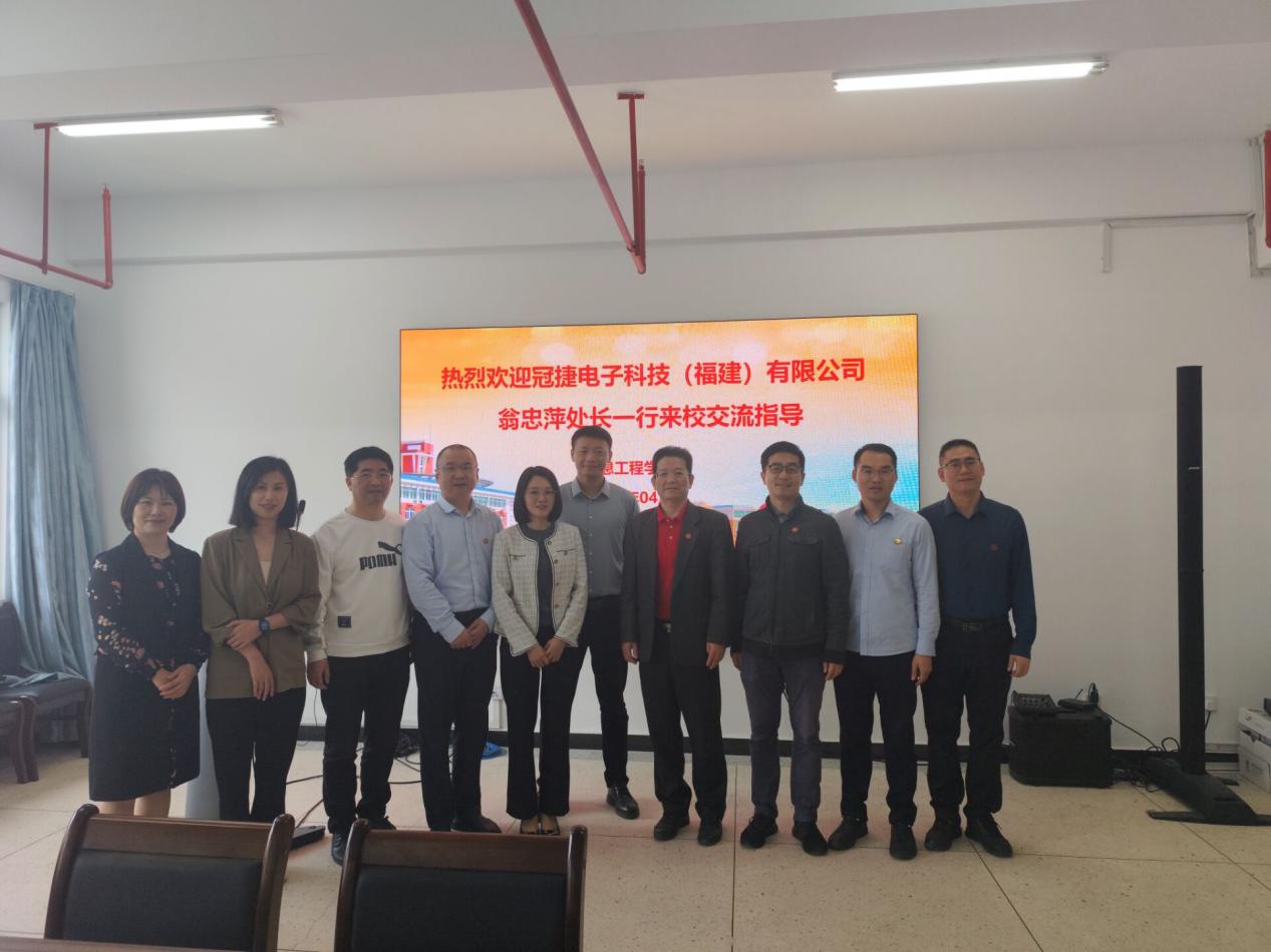为推动产教融合、校企合作,深化人才供需对接,2024年4月2日,信息工程学院按照学校“一个园区一个专班,一个企业一个专员”,保持良好的联系和互动,协同服务福州经济社会高质量发展的要求,邀请福清融侨经济技术开发区冠捷电子科技(福建)有限公司人力资源处处长翁忠萍一行来校走访交流。