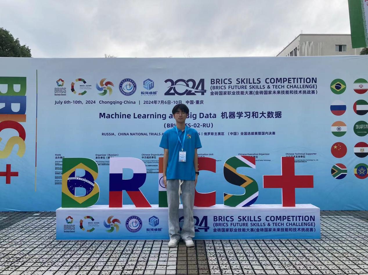 2024金砖国家职业技能大赛机器学习和大数据赛项全国选拔赛暨国内决赛于2024年7月6日—10日在重庆安全技术职业学院隆重举办。在林峰老师的指导下,来自22级软件技术专业的杨帆同学取得好成绩,荣获三等奖。