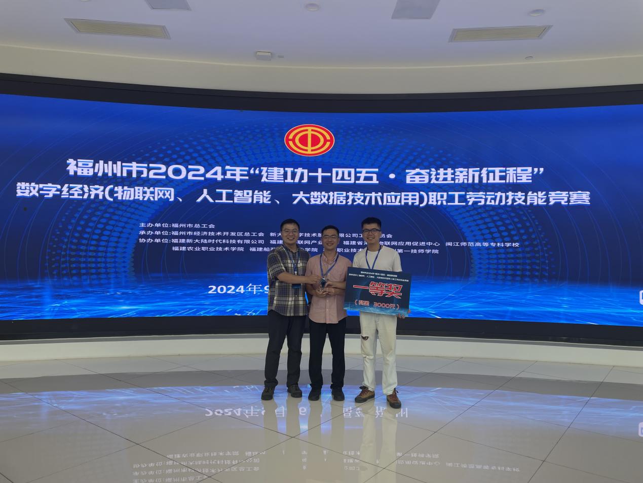 福州市2024年“建功十四五·奋进新征程”数字经济职工劳动技能竞赛于2024年9月26日在中国福州物联网产业创新发展中心隆重举办。由我校信息工程学院赵佳旭、林峰、孙彬三位教师组成的参赛团队,经过努力拼搏,以总成绩第1名的好成绩代表学校荣获大数据技术应用赛项一等奖。