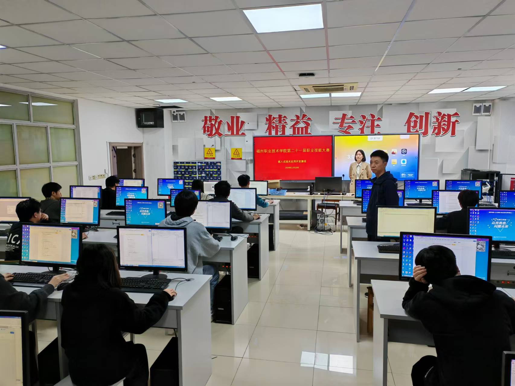 为了顺利对接2024年度福建省职业技能大赛,做好校赛参赛选手的选拔工作,智能互联网络技术专业于2024年11月20日在职教1号楼顺利举办了第二十一届福州职业技术学院技能竞赛物联网应用开发赛项和嵌入式技术应用开发赛项。