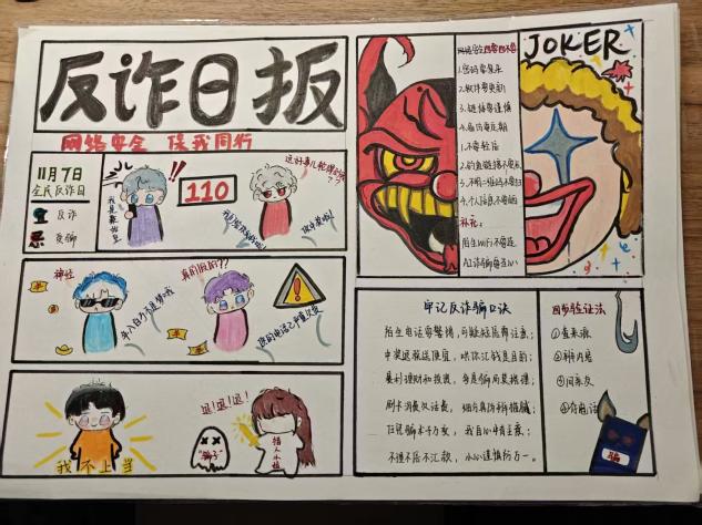 为切实提升学生防范电信网络诈骗的意识与能力,筑牢校园安全防线,信息工程学院于 2025 年 10 月 23 日至 11 月 2 日成功举办 “筑牢防诈防火墙,平安校园共守护”主题防诈骗手抄报活动。活动面向学院全体在校学生,以生动直观的创作形式传递防诈知识,助力平安校园建设。