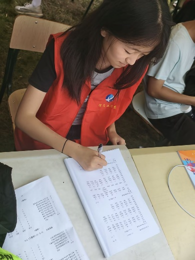 运动会期间,志愿者们早早来到赛场,迅速投入到各项准备工作当中。在运动员集结区,志愿者们耐心地为参赛选手进行信息登记与核对,确保比赛的有序进行。他们仔细地为每位运佩戴号码布,这一细节不仅方便了比赛的识别与统计,更让运动员们感受到了志愿者的细心与专业。