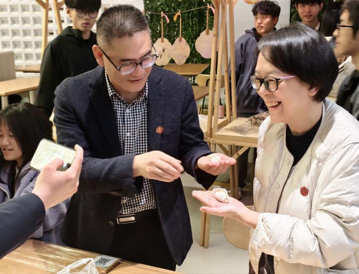 活动现场暖意融融,特色美食区的甜咸汤圆、手工饺子持续供应,现煮现吃的热乎滋味俘获了师生味蕾;互动体验环节更是精彩纷呈,手工饺子大比拼中师生组队协作、各展身手,漆扇DIY里大家创意挥毫、勾勒巧思,校园弓趣汇的射击挑战也让现场欢声笑语不断,签名墙打卡处更是定格了一个个温馨瞬间。师生们玩得不亦乐乎,欢声笑语中拉近了彼此的距离。