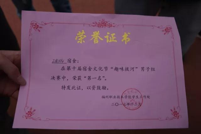 2017年12月6日,福职院学生会自律部在篮球场组织“扬核心价值观 展励园宿舍风采”趣味拔河比赛。
