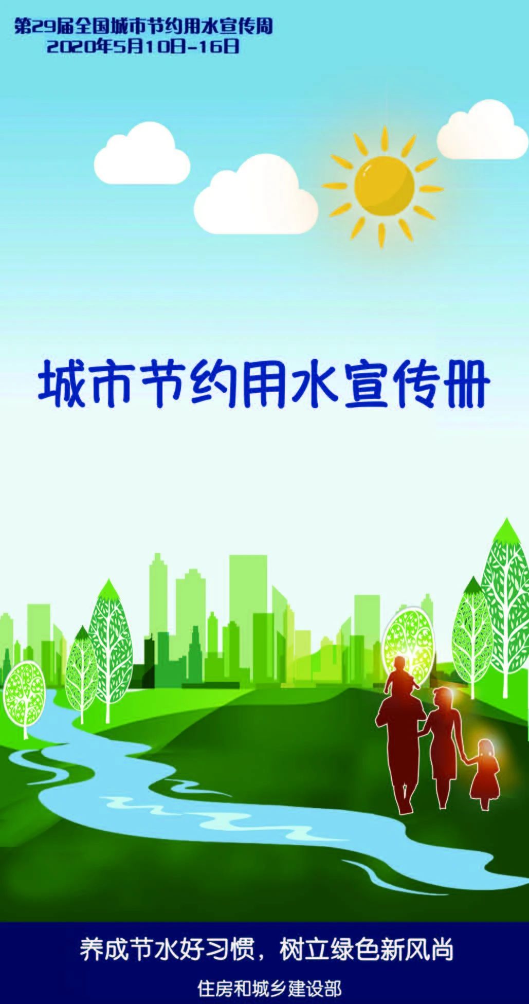 节约用水是在保护我们的生态坏境,保护水资源是保护我们的家园。2020年5月10—16日是第29个全国城市节约用水宣传周,本次活动的主题为“养成节水好习惯,树立绿色新风尚”。为了更好地宣传节水知识,我们通过《城市节约用水宣传册》带你了解城市节水,以生动活泼的形式总结推广城市节水用水的好习惯、好做法。