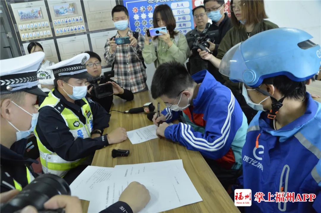 针对行人、非机动车闯红灯交通违法行为福州交警对相关违法人进行处罚后还将与文明办干部“入家门、入单位、入企业”进行通报、劝诫并签订规范承诺书要求所属单位对违法人加强教育管理希望通过这样的方式达到减少非机动车违法行为的效果