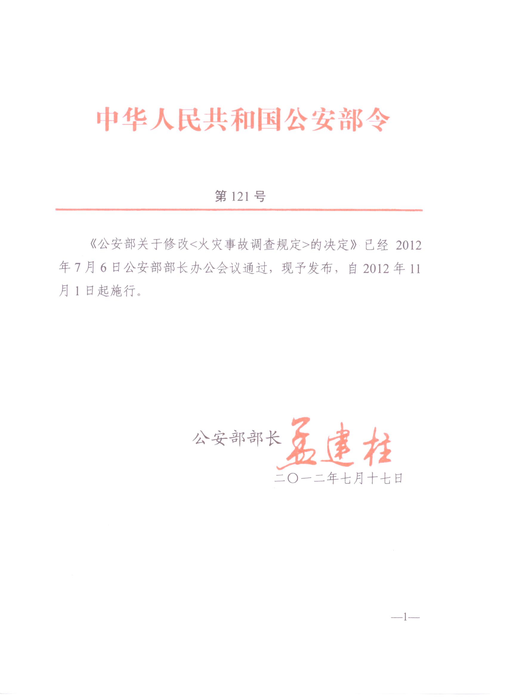 为进一步规范公安机关消防机构火灾事故调查工作,完善火灾事故调查的内容和程序,公安部决定对《火灾事故调查规定》作如下修改: