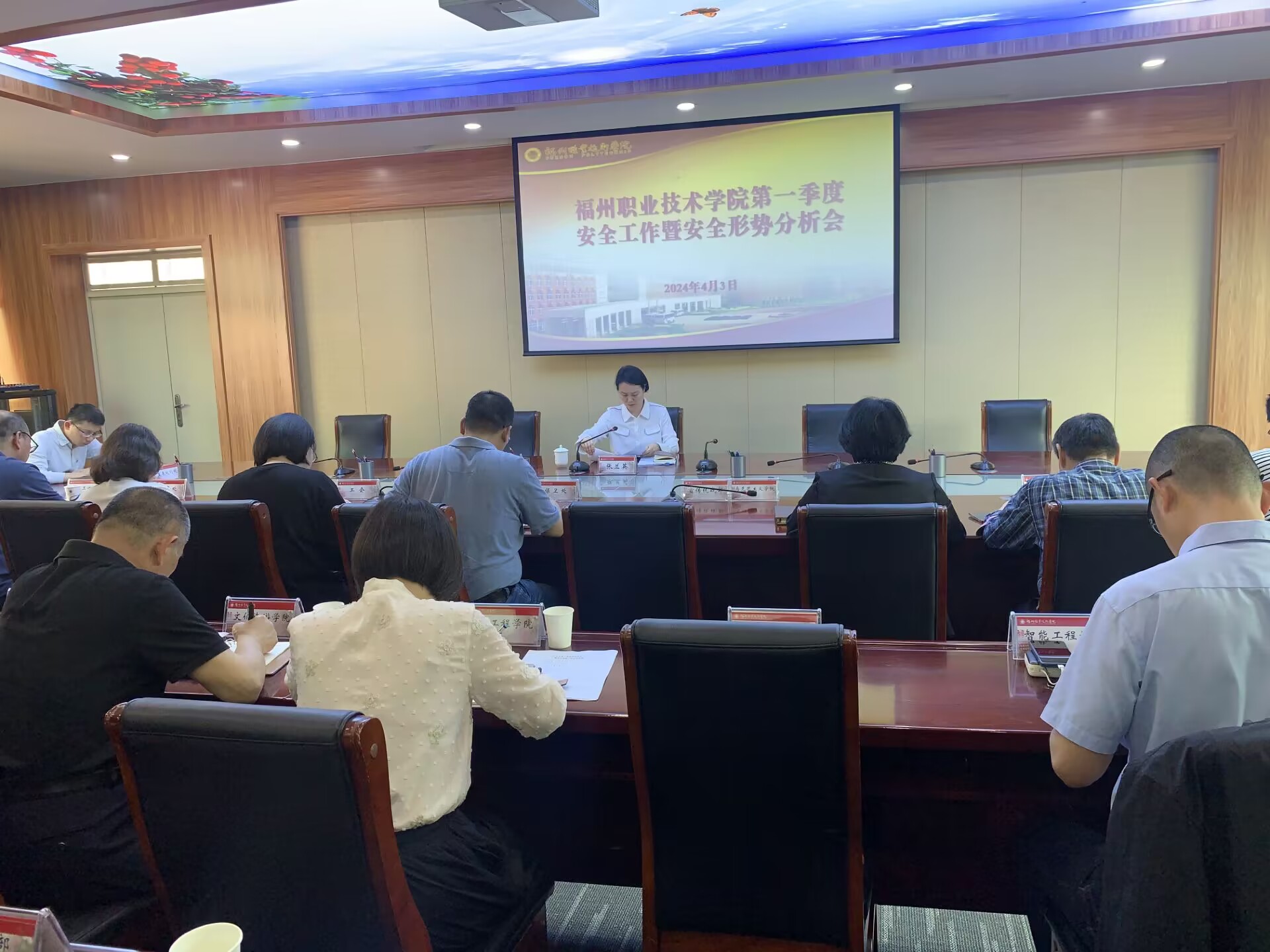 2024年4月3日,学校召开了2024年第一季度综治安全工作暨安全形势分析会,会议传达学习贯彻上级相关会议和文件精神,对学校创建福建省高质量平安校园和安全生产治本攻坚三年行动进行部署,副校长张兰英主持会议并讲话,各行政教辅部门负责人、各院部负责人,保卫处全体人员参加会议。