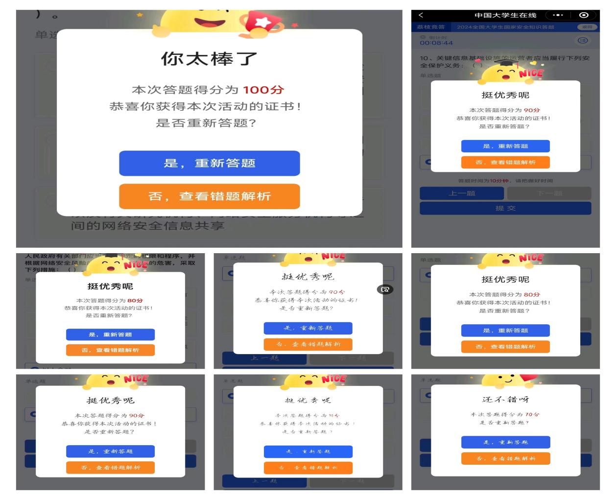 4.通过大学生在线网站或微信公众号参与“全国大学生国家安全知识答题”活动,引导大学生坚定维护国家政权安全、制度安全、意识形态安全,营造国家安全人人参与、人人有责的浓厚氛围。