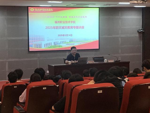 为深入贯彻落实习近平总书记关于防灾减灾救灾重要论述指示批示精神,落实上级和学校工作部署,组织做好全国防灾减灾日各项工作,保卫处于5月14日下午邀请福州大学应急管理专家段在鹏教授来校为师生开展“2025年防灾减灾”安全教育专题讲座。我校各学院学生、安全员及保卫处人员约300名师生参加活动。