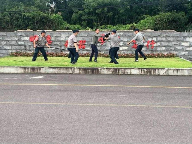 为构建平安校园,全面提升校园反恐应急处置能力,强化安保队伍实战水平,2025 年 6 月 11 日下午,我校保卫处精心组织学校保安服务公司开展了一场紧张有序的反恐专项演练。此次演练规格颇高,保卫处黄云敦处长、吴祥俊副处长亲临现场指挥调度,荷塘派出所张世杰警官也受邀到场,凭借丰富的公安实战经验,为演练提供专业指导。全体参演人员秉持高度的责任感,全身心投入,圆满完成了演练任务。