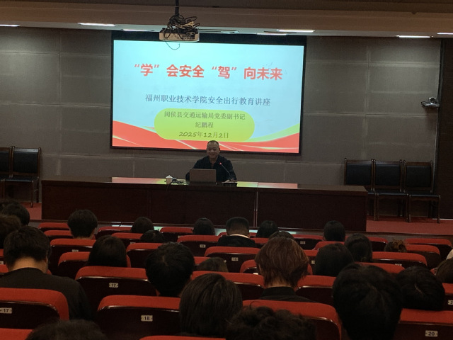 冬日暖阳聚暖意,携手同行护平安。12月2日,福州职业技术学院与闽侯县交通运输局在学院学术报告厅联合举办2025年“文明交通 礼行天下”全国交通宣传日主题活动。此次活动是校地深化协防联控机制、搭建沟通桥梁的具体实践,旨在为师生提供优质安全的交通服务保障。