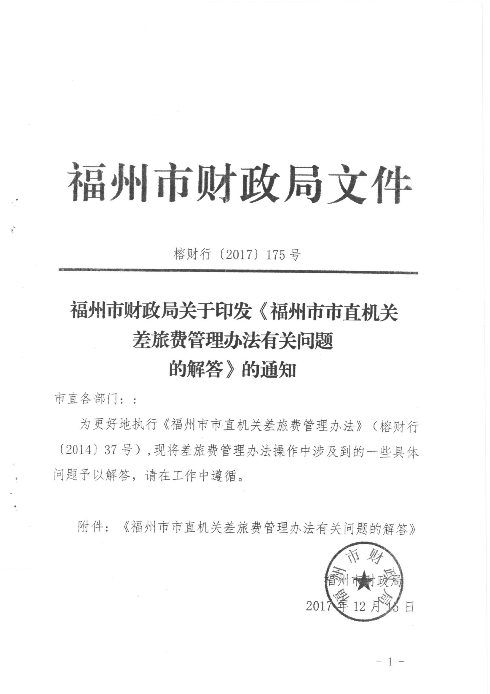 为更好执行《福州市市直机关差旅费管理办法》(榕财行〔2014〕37号),现将市财政局《福州市市直机关差旅费管理办法有关问题的解答》(榕财行〔2017〕185号)转发给你们,请各单位认真学习文件内容,在工作中遵照执行。