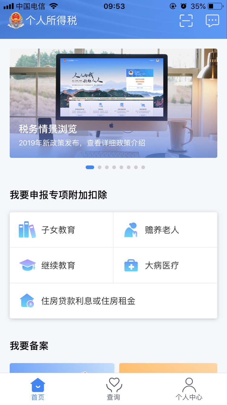 个人所得税APP端包含了注册、登录和专项附加扣除、申报、缴款等功能,注册成功登录进入平台后,您可以自行完善、修改个人信息,以后可以直接通过该平台进行相关涉税业务操作。