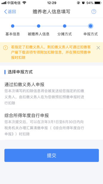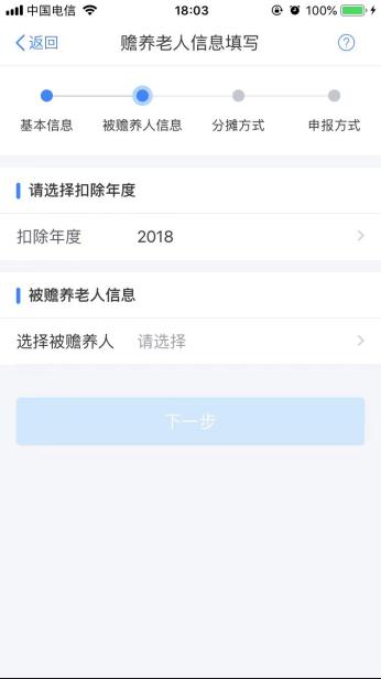 选择扣除年度以及被赡养人信息点击【下一步】;