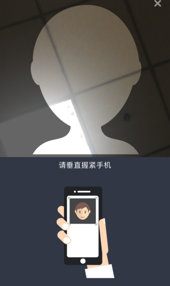 垂直握紧手机进行拍摄,系统调用公安接口进行比对验证,验证通过后会跳转到登录设置页面;