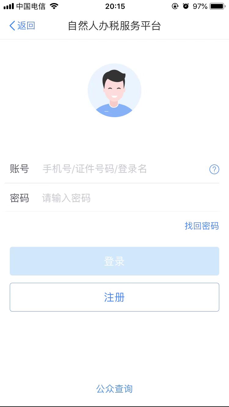 打开个人所得税APP后即显示登录页面,可凭注册的手机号/登录名/证件号作为账号进行登录。其中,注册时选择除居民身份证以外的证件类型,请使用登录名或手机号登录,最后录入密码即可。