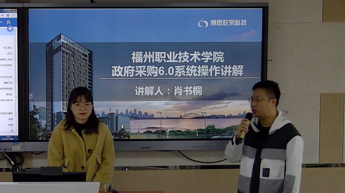 此次培训会邀请政府采购6.0系统搭建方——博思数采科技发展有限公司的肖书桐经理、连张捷工程师,针对政府采购6.0系统采购预算、立项功能、采购意向公开、采购计划管理、采购结果确认、网超系统等十个重要功能操作流程,结合政府采购政策向参会人员进行了详细讲解。同时,围绕政府采购基本流程,规范要求等方面,会议现场进行了互动交流,切实帮助学校采购人员解决采购过程遇到的相关问题。