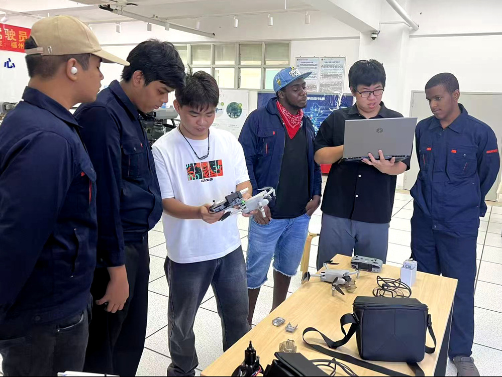 国际生在学校学习无人机操作技术