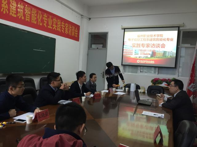 为了进一步落实专业调研精准化工作,明确建筑智能化工程技术专业典型工作任务,2016年11月9日电子信息工程系在401系会议室召开了建筑智能化工程技术专业实践专家访谈会。本次会议由电子信息工程系叶晓星副主任主持,他首先代表系部领导对与会专家的到来表示欢迎,并简要介绍了实践专家访谈会的背景、目的和会议流程。参会的实践专家按照会议既定的流程踊跃发言,积极为专业人才培养建言献策,收到了预期的效果。