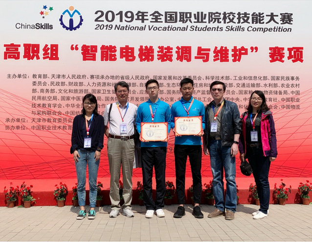 5月6日至9日,2019年全国职业院校技能大赛高职组“智能电梯装调与维护”赛项在天津轻工职业技术学院举办,来自全国各地的89支代表队及1支缅甸留学生代表队参赛。建筑工程学院院长叶晓星率指导教师倪榕生、蔡碧贞、选手罗河林、马启元代表我校参赛。经过激烈角逐,我校代表队最终斩获团体二等奖。