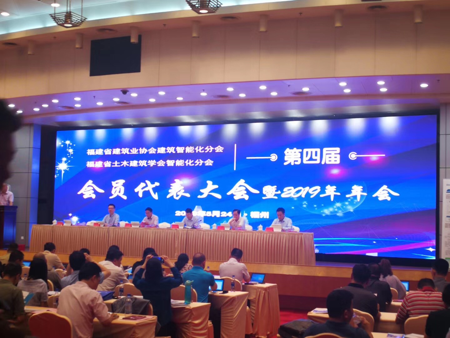 2019年5月24日,福建省建筑业协会建筑智能化分会第四届会员代表大会暨2019年年会在福州市召开,建筑工程学院院长叶晓星受邀参会。