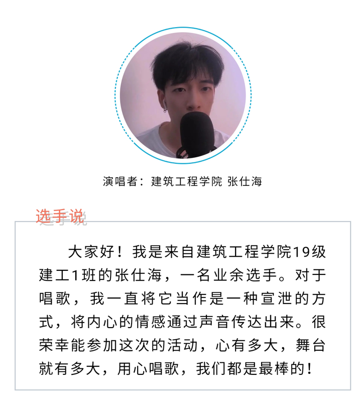增强学生的爱国热情,坚定青年学生理想信念,进一步落实共同抗疫工作,近日,福州职业技术学院成功举办第十七届校园文化艺术节之“青春战疫,乐动人心”线上校园十佳歌手赛。经过各参赛选手的激烈角逐,我系2019建工1班张仕海同学和2019建筑智能化1班张伟同学,凭借优美的唱腔和悠扬的歌声脱颖而出,获得了十佳歌手赛第二名和第八名的好成绩。