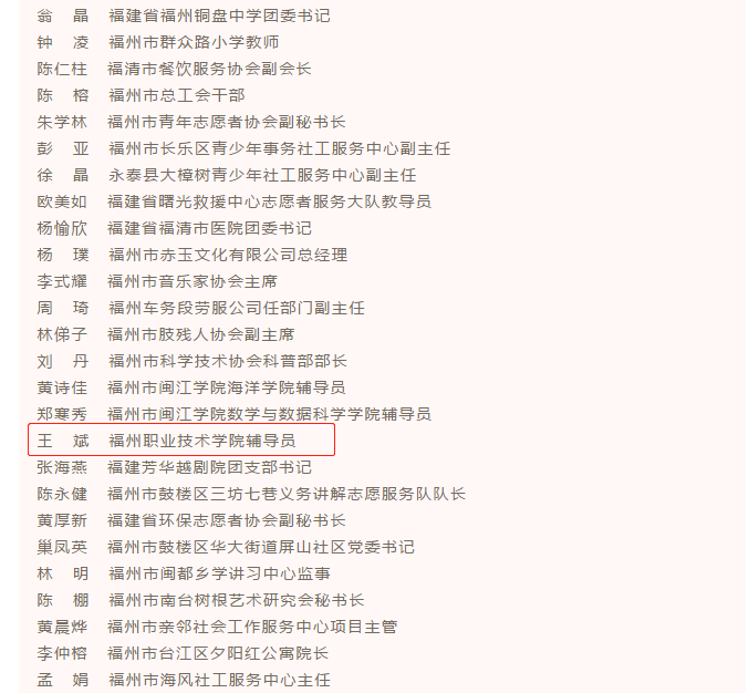 祝贺!福州市“五个100”暖心志愿服务先进典型名单