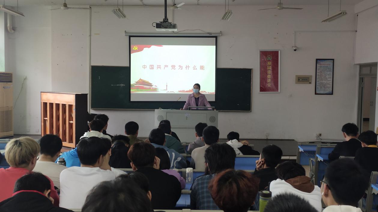 在课上,刘春兰副校长从科学的理论指导、坚定的理想信念、强大的组织优势、坚实的群众基础和彻底的自我革命等五个方面深入浅出的为同学们讲述了在波澜壮阔的百年奋斗历程中,中国共产党是怎样紧紧依靠人民,跨过一道又一道沟坎,取得一个又一个胜利,为中华民族作出了伟大历史贡献,并在执政道路上取得非凡成功的奥秘。