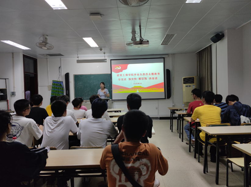 为进一步提升毕业生党员的党性修养,激励毕业生党员不忘初心砥砺前行,6月16日晚,建筑工程学院在电子楼401教室开展2021届毕业生党员“学党史 强党性 新征程 再奋进”主题教育活动。