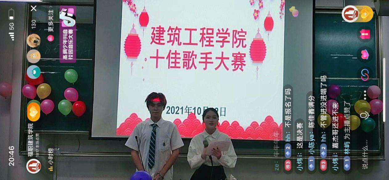 本次比赛活动以线上线下相结合的方式向全系师生展示。经过层层选拔,13名成功晋级的选手站上了决赛的舞台。经过激烈的角逐,最终造价2020-1班林佳欣荣获冠军,智能化2019-1班朱非凡荣获亚军,造价2021-2班王世卓荣获季军,倪开钱、辛佳怡、候亨明三位选手荣获“优秀歌手”称号。