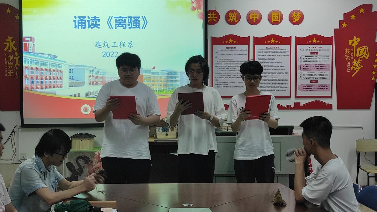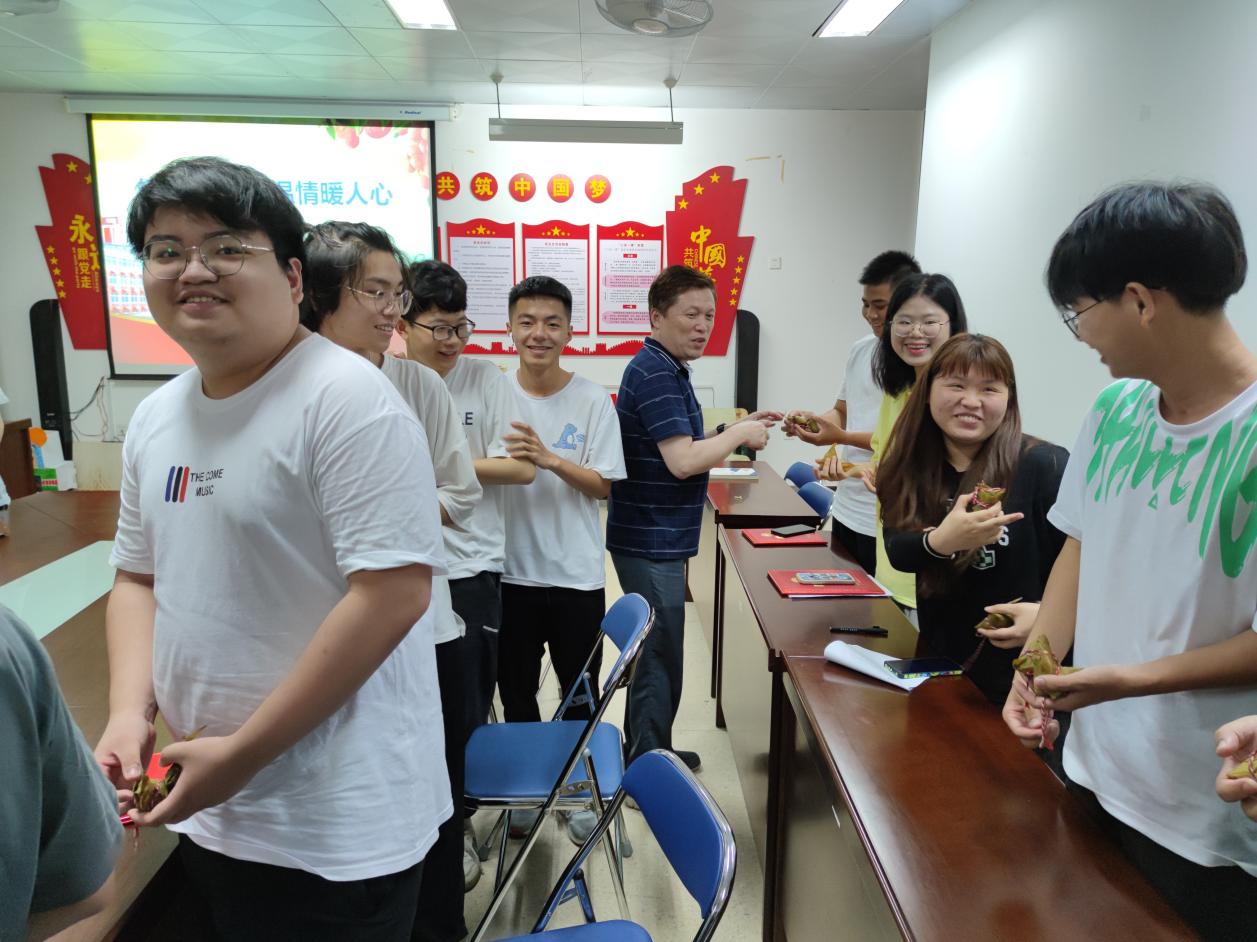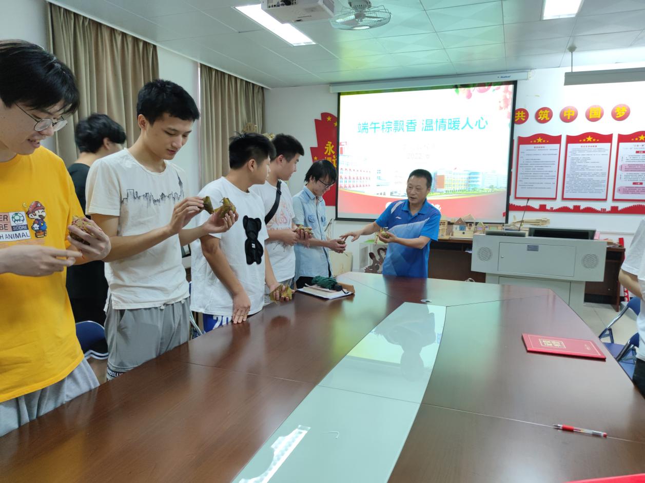 下午,建筑工程系师生代表在电子楼召开了端午座谈会,座谈会在《离骚》诵读中开始,我们将煮熟的粽子一一进到省外学生、家庭经济困难学生手中,为他们送去节日的关怀和祝福。