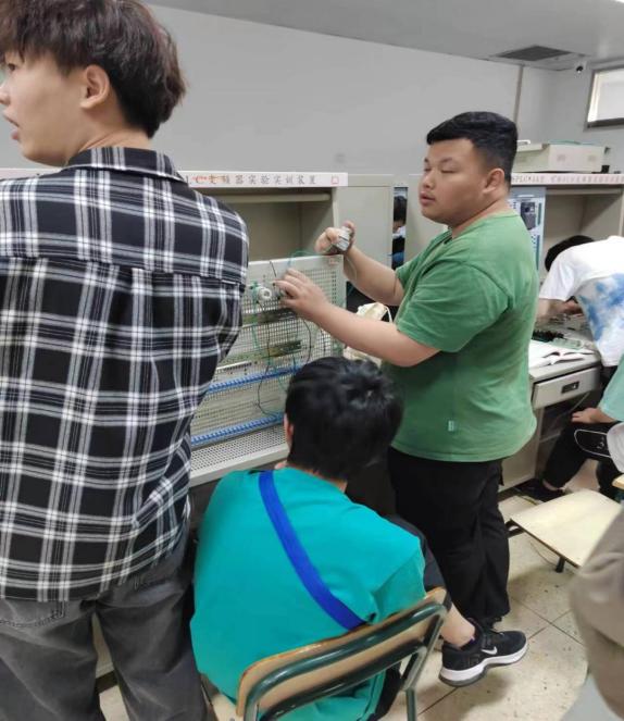 根据建筑工程系2023年职业教育活动周部署,2023年5月18日,我系开放位于电子楼208室的plc变频器实训室,安排专任教师现场指导参观的学生关于电梯综合控制原理、变频器原理、电工基础课程的实训实操相关知识。