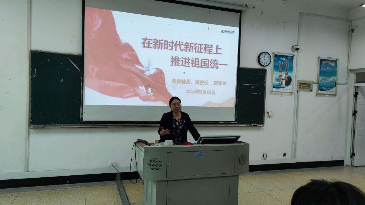 在课上,刘春兰副校长从“接续奋斗的光辉历程”、“不可阻挡的统一大势”和“与时俱进的行动纲领”三个部分为同学们阐述了中国共产党为完成祖国统一大业的民族夙愿和历史使命接续奋斗的历程以及新时代党解决台湾问题的总体方略的重大历史、理论、实践意义,让大家认识到,当前我们比历史上任何时期都更接近、更有信心和能力实现祖国完全统一的目标。