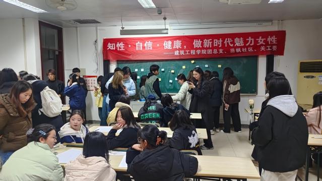 下午,“知性•自信•健康,做新时代魅力女性”为题的座谈会在知行楼402会议室拉开序幕。扬帆社区的指导老师们围绕“爱与成长”,从自我成长与恋爱观、自尊自爱与建立良好人际关系、高情商谈话等维度展开,深入探讨女性自我关怀与全面发展。座谈会现场通过个人经验分享、互动问答等形式,各位指导老师为女生们提供了实用指导。随后,知行楼活动现场热闹非凡,五大创意活动同步启动:“由‘妳’定义”撕标签游戏鼓励女生打破刻板印象;“妳画我猜”绘画接龙以趣味互动传递女性力量;知识问答环节寓教于乐,普及女性历史与科学成就;玫瑰墙打卡点吸引师生驻足,每位女生均可领取专属玫瑰,收获节日祝福。活动还融入音乐竞猜、小礼品兑换等环节,现场气氛热烈欢快。