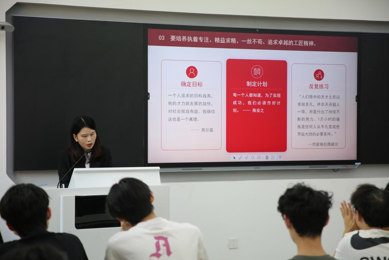 互动环节中,智能建造技术专业的林同学提问职业发展困惑,王小颖结合工作室培养机制回应:“技术技能成长需要‘三维坐标系’——纵向深耕专业、横向拓展跨领域知识、向远关注行业前沿。”